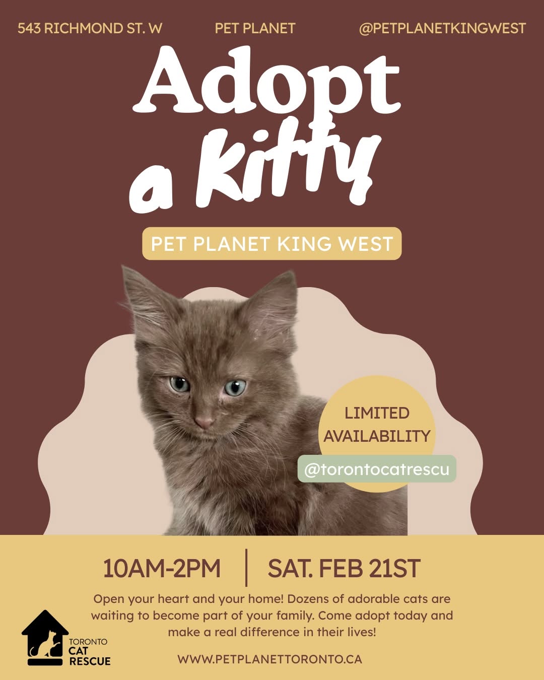 "I have enjoyed every visit to Pet Planet King West. All the staff are so friendly and helpful. They genuinely care about your animal and your peace of mind. The grooming services are also fabulous. My nervous dog loves it there!"
